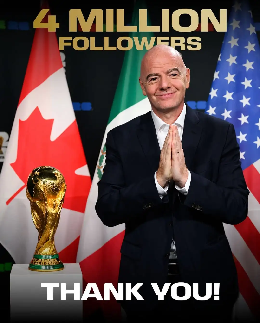 “我非常感谢所有关注我的的人。这是我用来分享作为国际足联主席所做工作的一个平台,我有幸与全球各地辛勤工作和奉献的合作伙伴们共同努力,确保足球能继续回馈那些深爱它的人们。🙏