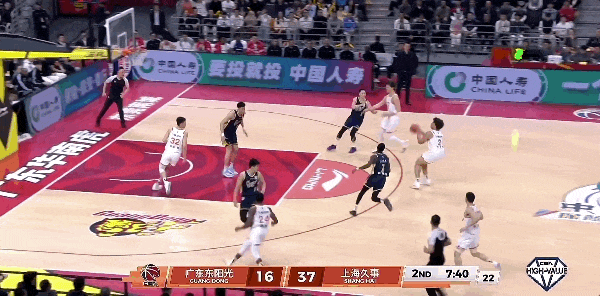 广东男篮有点被大鲨鱼打懵了,不仅毫无还手之力,还屡送失误。怀特塞德拿下篮板,古德温控球过半场,侧翼李弘权拿球出手三分命中!广东男篮的进攻稍有起色,但防守端仍然找不到办法限制上海队。